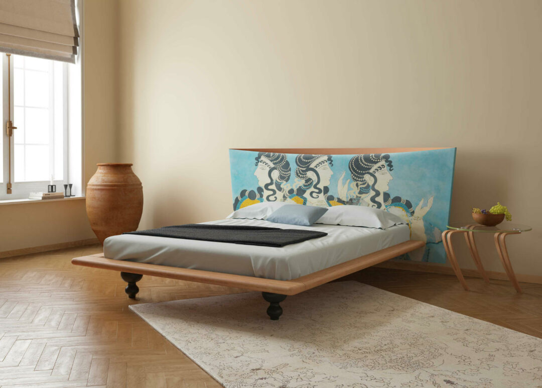 * Printed theme on headboard: Reproduction of the “Ladies in Blue” fresco from Knossos. Source: Region of Crete, www.incrediblecrete.gr